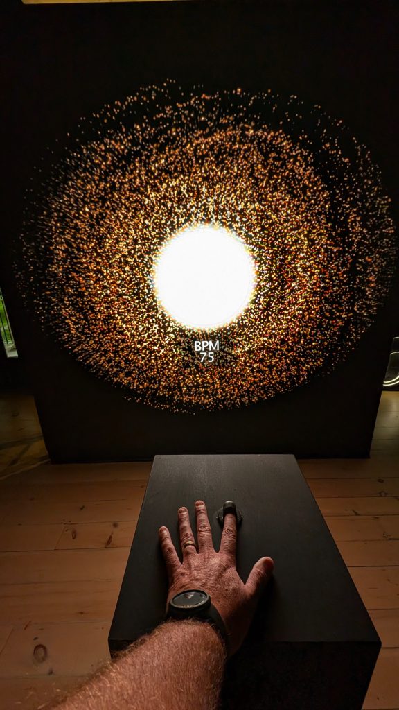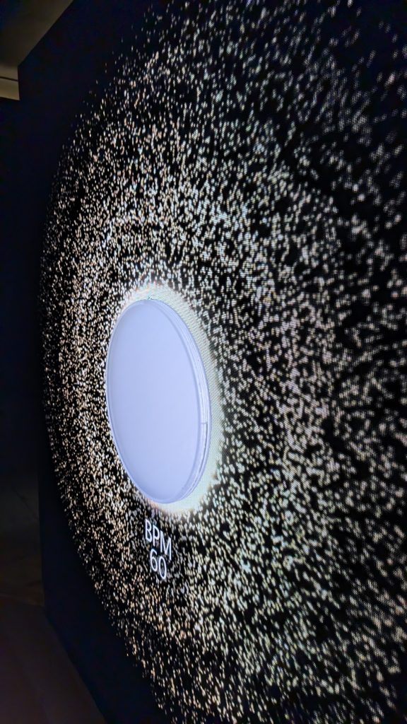A custom software application read the pulse of the user and created a swirling mass of stars and colours, with each unique pulse reading creating a different pattern of lights and colours for each test drive participant.