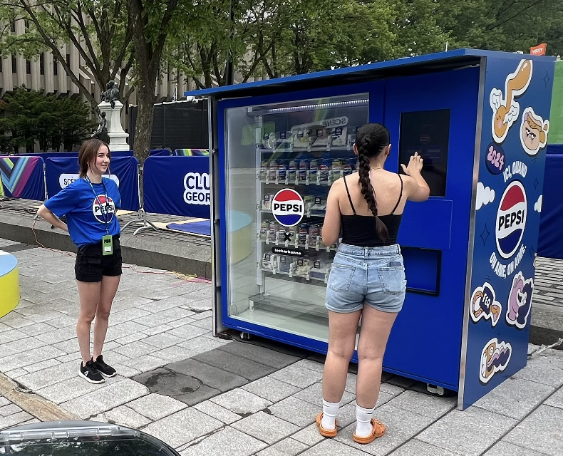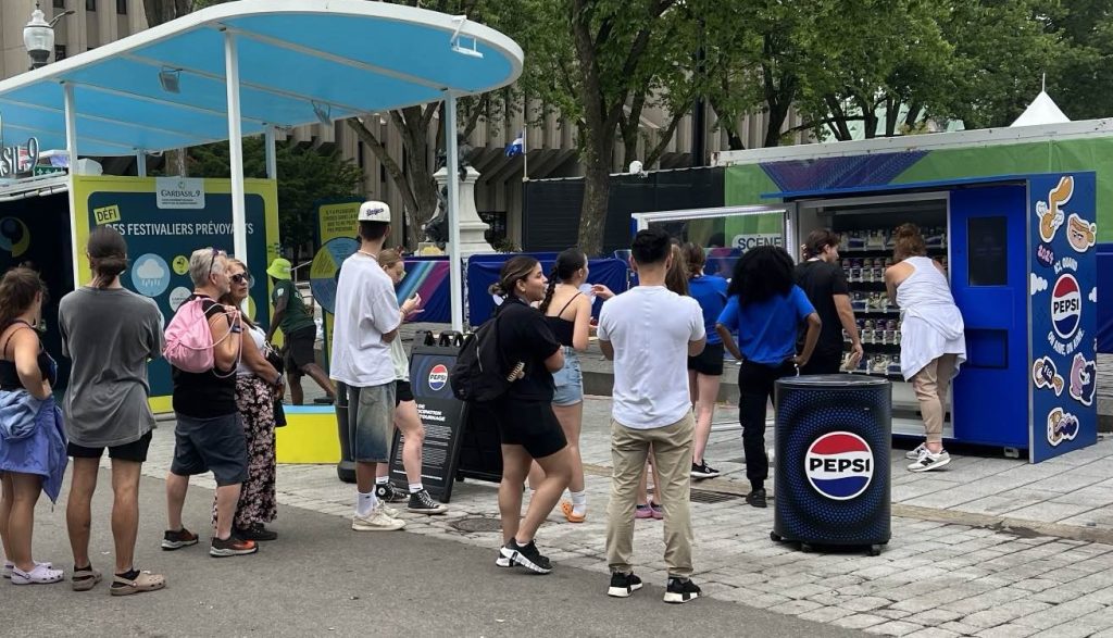 The machine wrapped was designed by Montreal based artist LeCharbonne, who also designed a custom wrap for the Pepsi cans, and the custom swag the machine dispensed!