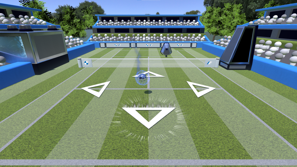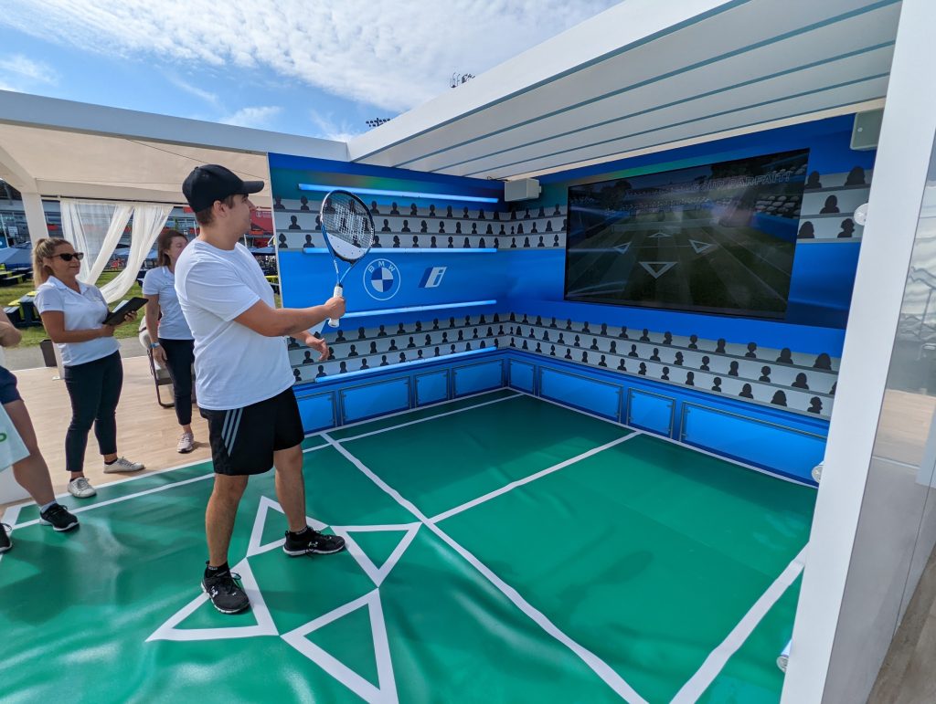 Using a custom-built smart racquet with kinetic sensors and haptic feedback, players competed against a virtual BMW charger in a Unity-based digital court.