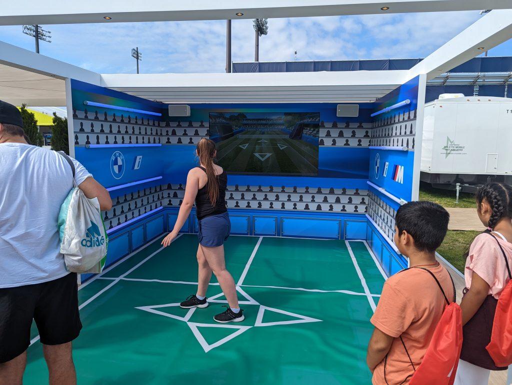 As they rallied, each swing was tracked in real time transforming physical effort into virtual energy that visibly charged a BMW EV battery on screen. The more intense the rally, the more power was captured.