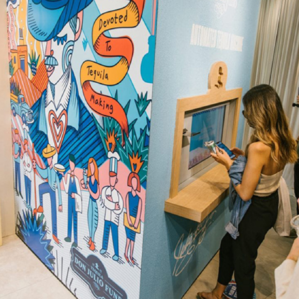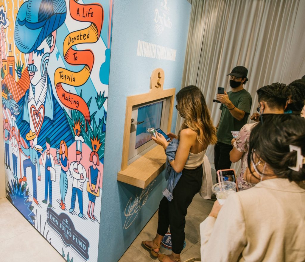This fully custom Automated Tequila Vending Machine dispensed exclusive Don Julio bank notes that could be redeemed for free drinks at partner venues. First users were verified via a scan of their driver’s license and they answered a few questions. The experience was seamless, safe, and sharable.