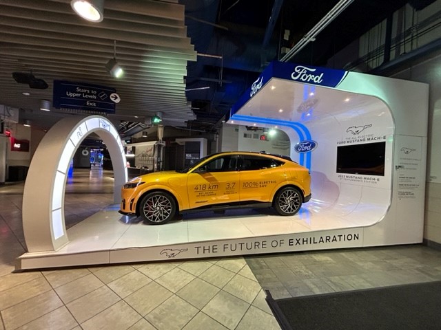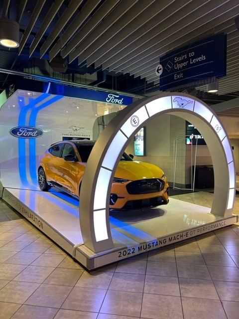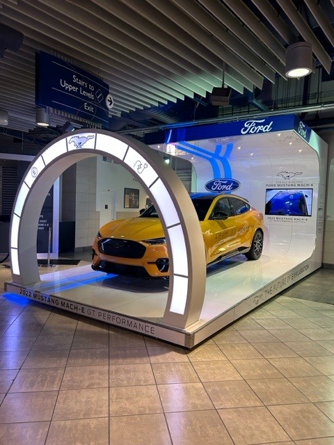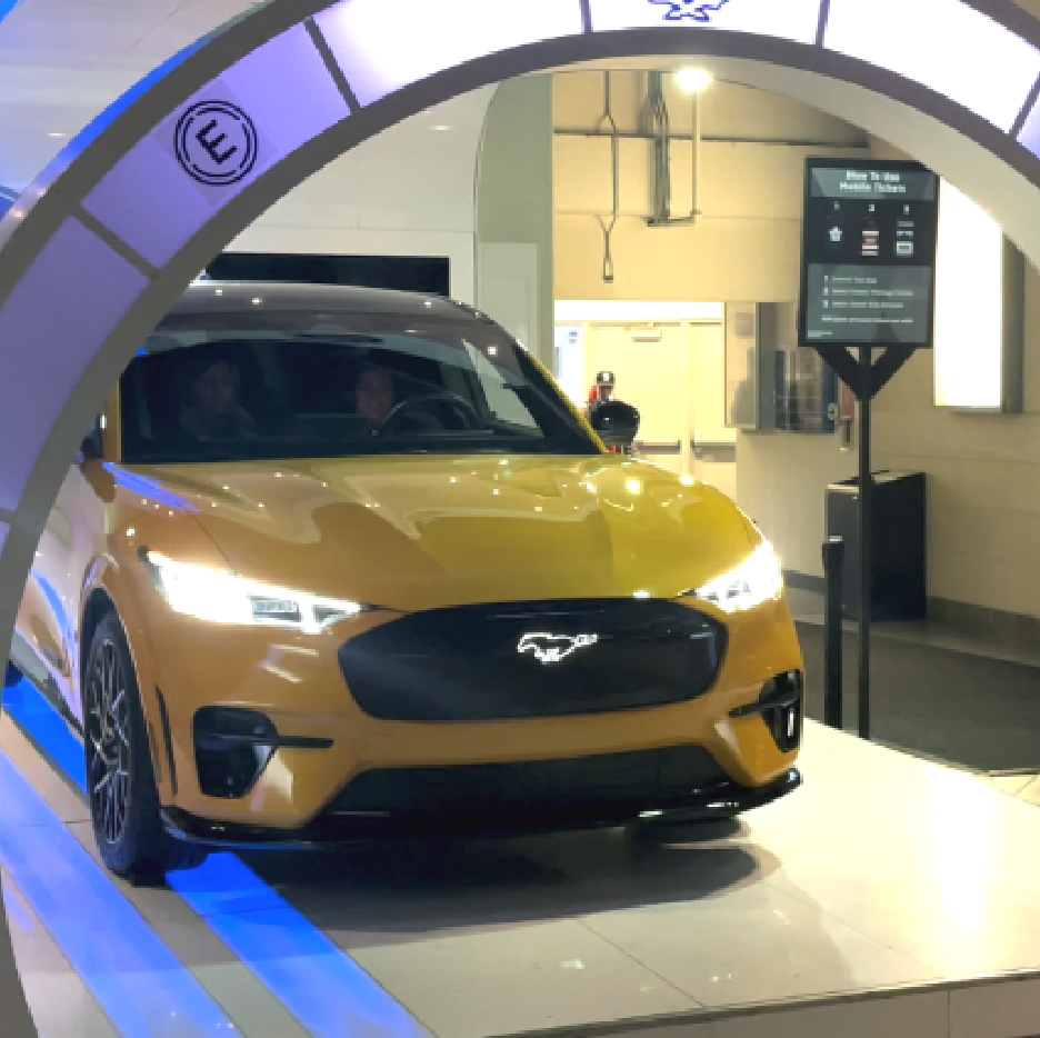 We gamified a vehicle display to allow hockey and basketball fans to play a light chase game, featuring the all-new Ford Mustang Mach-E.