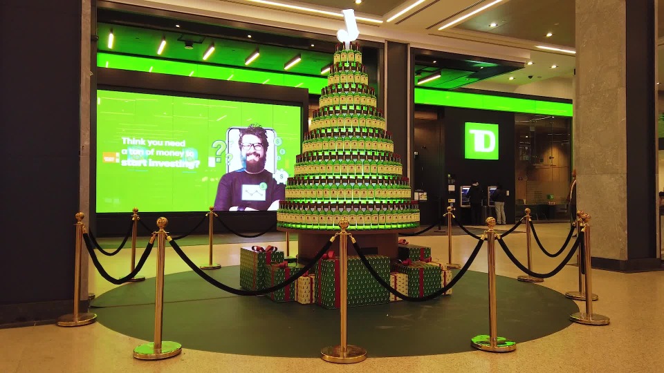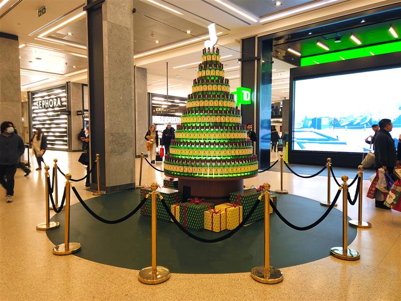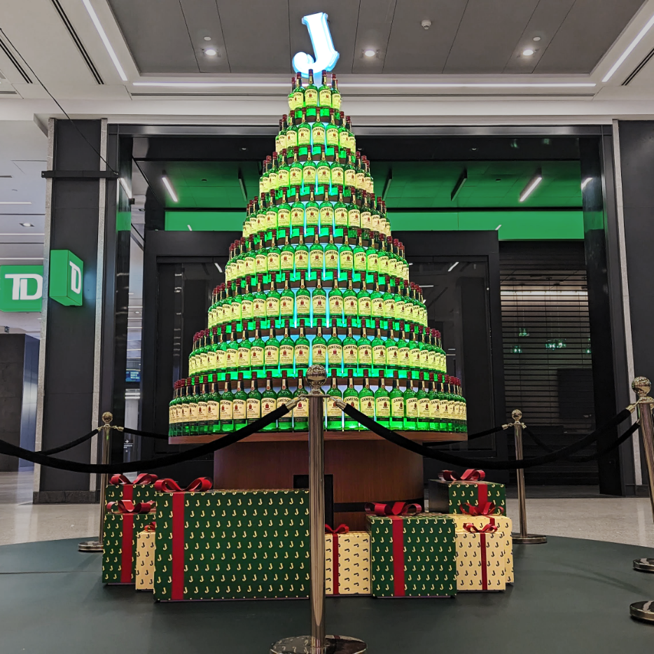We designed, fabricated, and programmed an 11-foot custom Jameson holiday tree and installed it at Toronto Union Station. Transforming one of the city’s busiest public spaces into a festive, branded landmark. Constructed using real Jameson glass bottles, the installation featured integrated, music-reactive LED lighting synchronized with pre-programmed, instrumental holiday soundscapes.