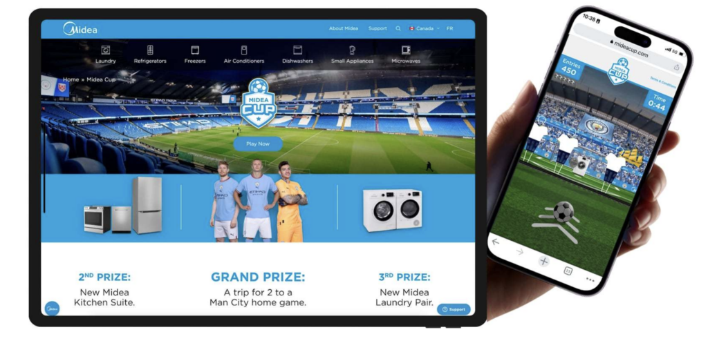 To activate their sponsorship of Manchester City F.C., appliance manufacturer Midea asked us to create a custom penalty kick game that integrated their products to give fans a chance to win entries to a massive grand prize.