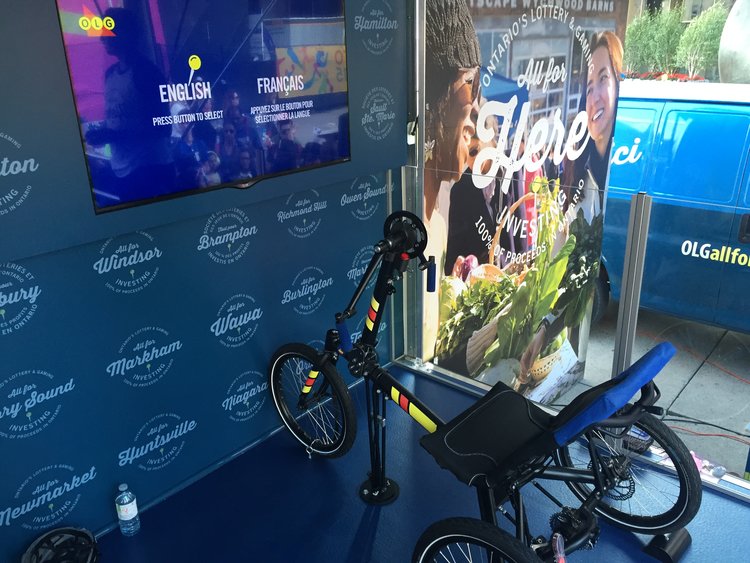 The experience visualized the Power of Play by translating physical output into “community dollars,” reinforcing how OLG funding supports local sports and infrastructure.
