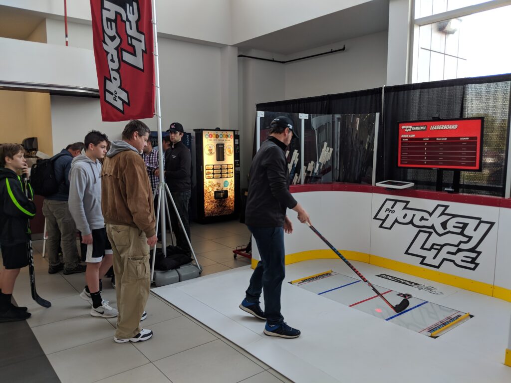 Custom programming, score tracking, and gameplay integration supported a smooth competitive flow, while built-in video capture enabled social sharing. The result was a high-energy hockey activation designed to showcase skill, encourage repeat play, and engage fans on and off the ice.