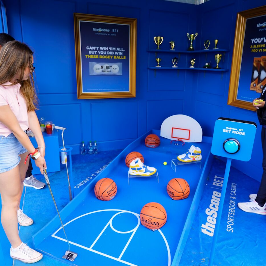 A four-hole interactive mini putt challenge turned competitive gameplay into a hands-on brand experience. We created themed putting lanes featuring “Bet Mode” obstacles, LED prize lighting, and modular drop-in components that allowed for flexible gameplay and rapid setup across events.