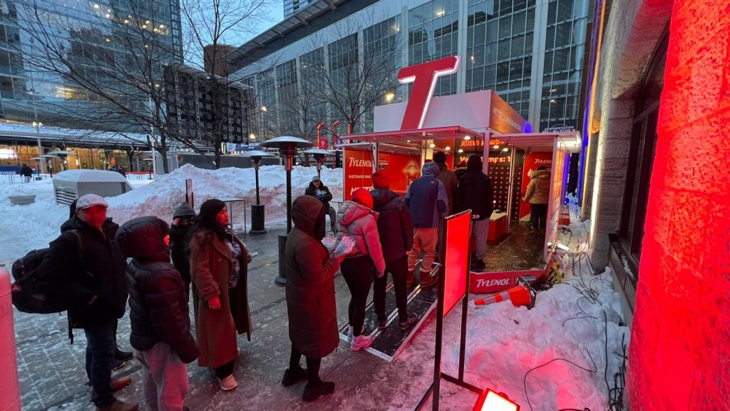 Players hit light-up buttons featuring Tylenol brand messaging and common pain points as they appeared in rapid succession.